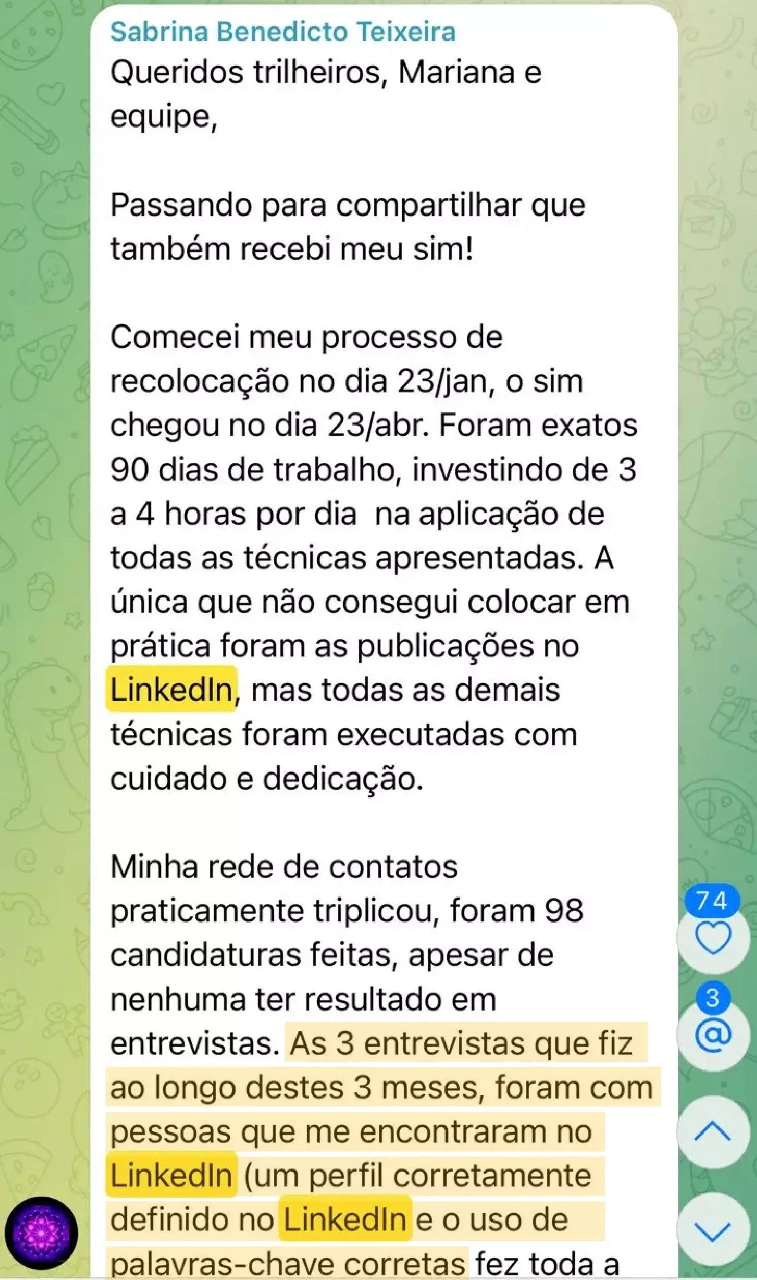 a mensagem que faz meus alunos chegarem a vagas que não são divulgadas